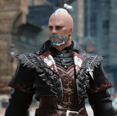 A stern and fierce cold glare is all that is offered to anyone who first makes eye contact with this war torn highlander. Be wary to not test his temper, for the loud, boisterous, and honorable hyur can be quick to anger.